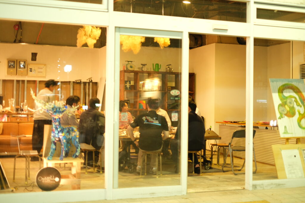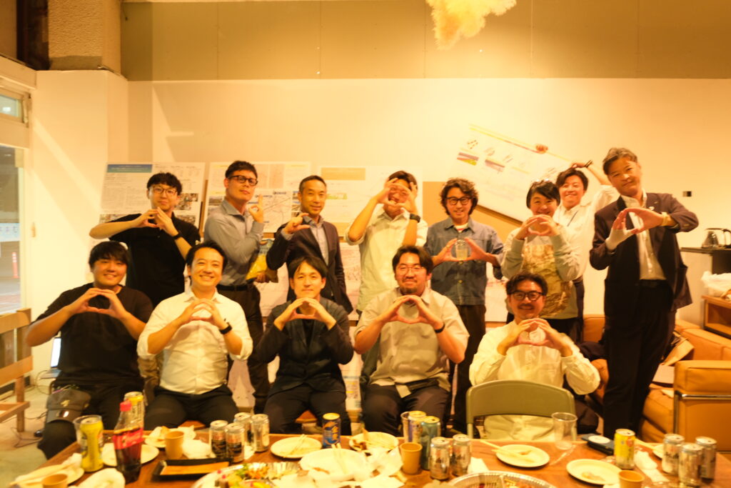 2025年10月21日(火)、株式会社環境デザイン機構とUDCOMT.との共同運営する、大牟田駅東口にオープン予定のプラットフォーム「カタルバ オセロ」にて、「語って彩る、まちのこれから」と題した懇親会を開催しました。当日は、UDCOMT.事務局スタッフやUDCOMT.の事業をサポートいただいている方、インターン生など13名が参加しました。