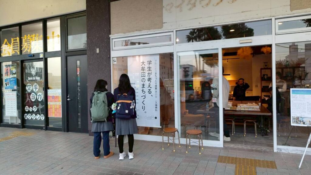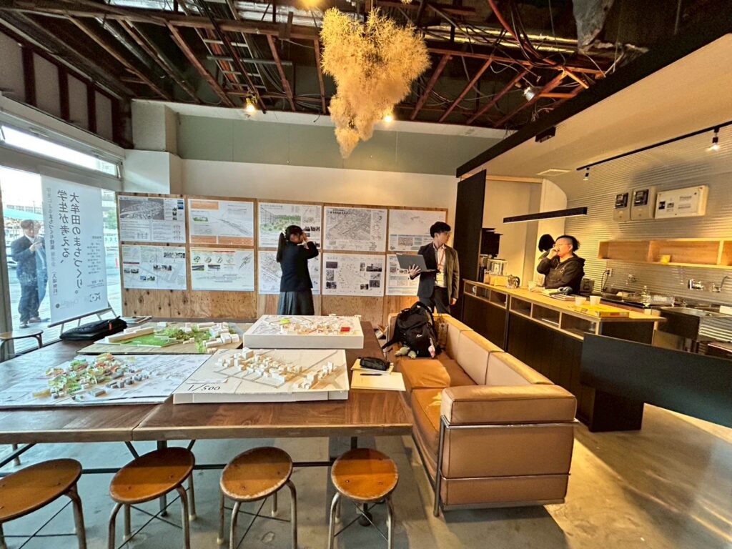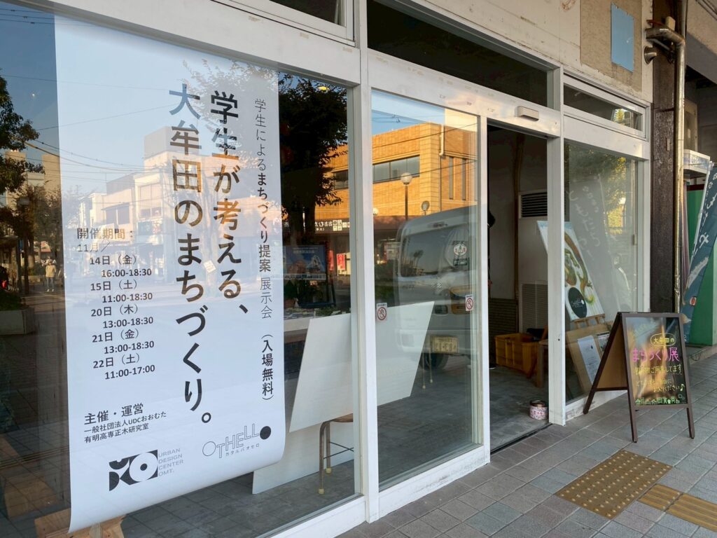 展示会の運営は、有明高専創造工学科建築コース正木研究室のゼミ学生が担当します。まちづくりを学ぶ学生は、会場である「オセロ」について、駅のそばにあり、今後、コミュニティカフェとしてオープン予定の会場であることから、その「場」の可能性を研究しています。