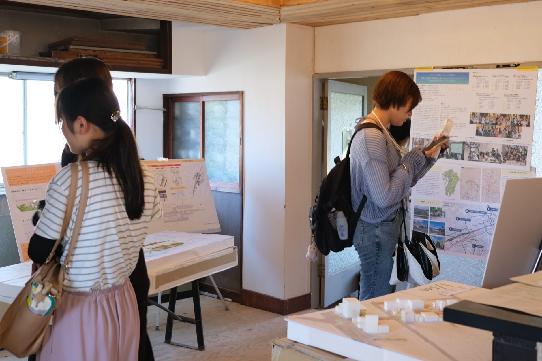 また古里荘には、9月に実施した日本建築学会主催の学生シャレットワークショップで出された提案の模型を展示し、未来のまちづくりについて関心を持ってもらう機会としました。