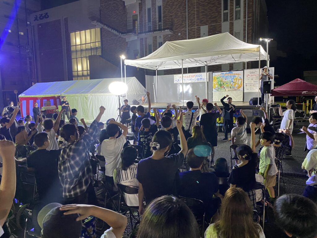 その後、新栄町で行われた秋祭りでは、両氏によるトークショーやご当地クイズ、抽選会、eスポーツ体験会などが実施され、会場は大いに盛り上がりました。初めて大牟田を訪れた参加者も多く、地域の魅力に触れながら笑顔で楽しむ姿が印象的でした。