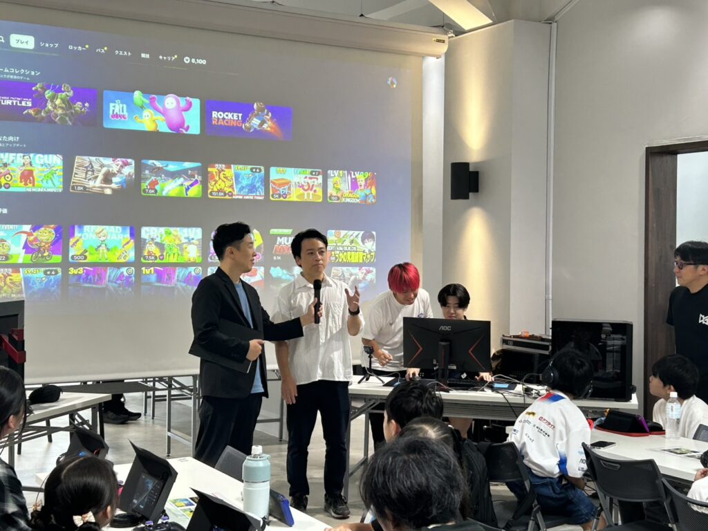 当日は、市内外から小中学生37名、保護者を含めると約100名の方が、アウレアで開催されたeスポーツ大会に参加しました。プロeスポーツストリーマーの LiaqN(りあん)氏、そして緊急参戦となった ぜるふぃー氏 をゲストに迎えた「フォートナイト」大会は、白熱した展開となり、参加者たちは熱気あふれる対戦を繰り広げました。