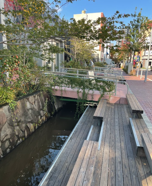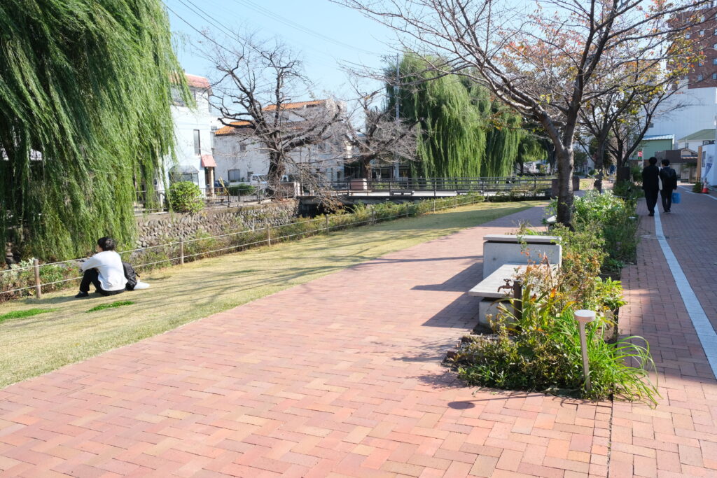 理念を実際の風景に変えるため、市民が理解しやすい3つのモデルプロジェクトを動かすことが重視されました。その代表例が、2021年に始まった馬場川通りの利活用プロジェクトです。MDCを中心に、約200メートルの水路と歩車道を民間資金で再整備するという前例のない挑戦が行われました。