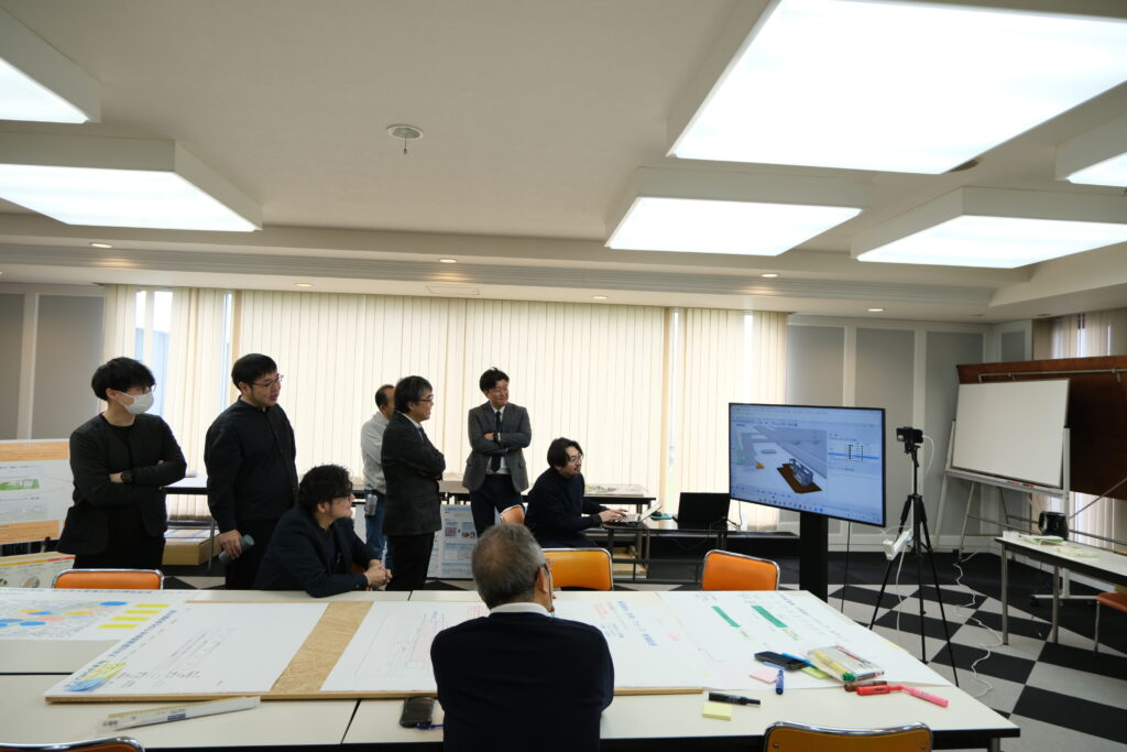 まずは大牟田駅周辺のまちづくりのあり方について検討を開始しました。学生たちのアイデアを単なる構想で終わらせず、具体的な実装に向け、全国の事例を共有しながら、中長期的なステップだけでなく、直近で実施すべき社会実験の案まで、非常に踏み込んだ議論が展開されました。