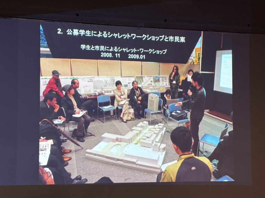 計画を動かす際、小林氏らが最も重視したのは「関係者の意識改革」でした。一方的に案を決定する「コンペ」方式ではなく、地元のNPOが主体となり、市民ワークショップや学生シャレットワークショップを幾度も重ねる手法を選択されたとのこと。