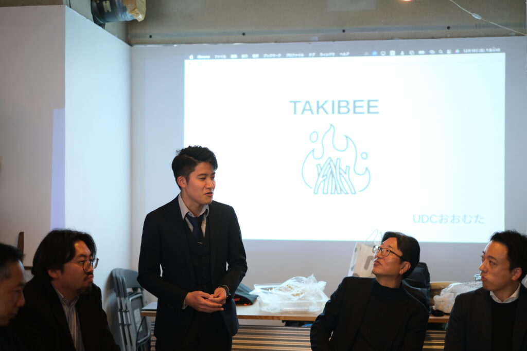 という流れです。一人ひとりの想いが語られ、関係性が生まれ、その関係がまた次の挑戦やまちの価値を育てていく。UDCおおむたは、TAKIBEEを通じて、想いが循環し続けるまちづくりの土壌を育んでいきます。