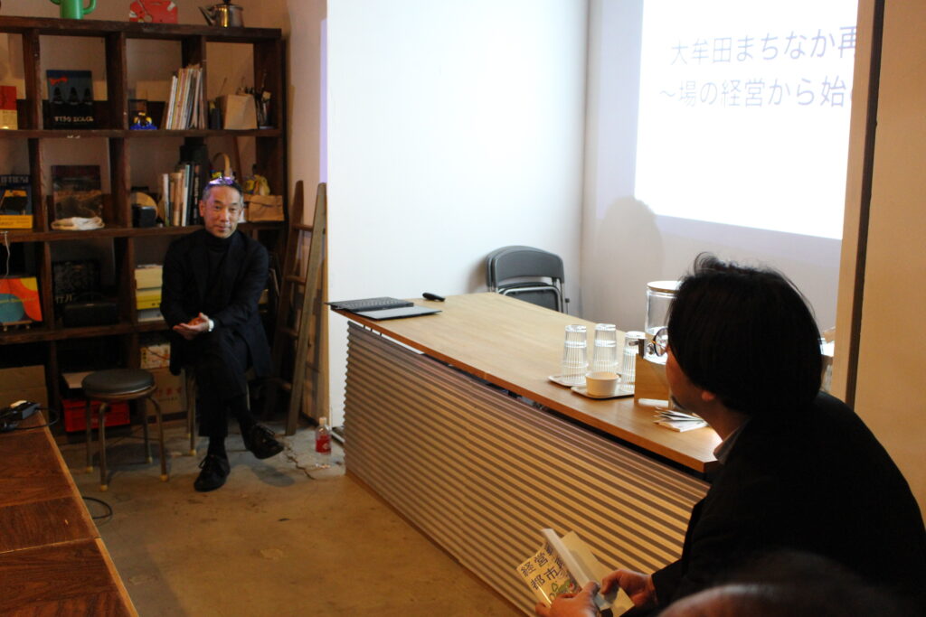 後藤統括ディレクターがこれまで関わってきたまちづくりの中でも、特に製造業の街である福井市と福山市を例に取り、大牟田市と比較しながら「まちの再生にとって必要なものは『場』」という話題を提供。その後、正木センター長がモデレーターとなり、「大牟田のまちなか再生の次の一歩」をテーマにトークセッションを実施し、これからのまちづくりのあり方や、大牟田で実践していくための視点について語り合いました。